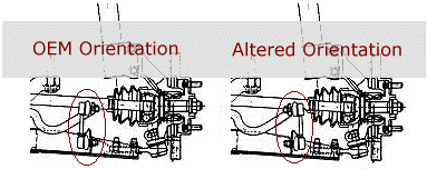 To enhance the stiffness even further, it's possible to shim the lower mounting of the end link out even further (about 1/4") with a few properly sized washers. (Shimming the top mount won't do anything except increase the possiblity of interfering with the brake caliper at full steering lock.)